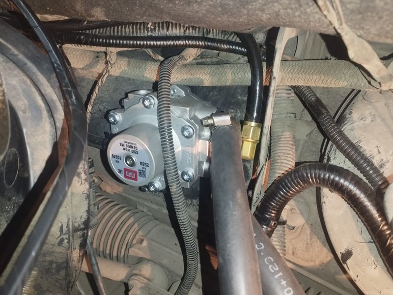 На баллон установлен мультиклапан с электрозапиранием и датчиком уровня. Термопластиковые магистрали выведены под днище машины через вентиляционную трубу.
