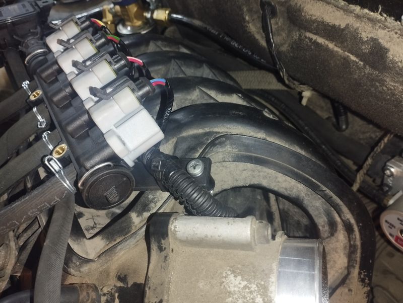 Газовая рампа с помощью кронштейна закреплена на впускном коллекторе.