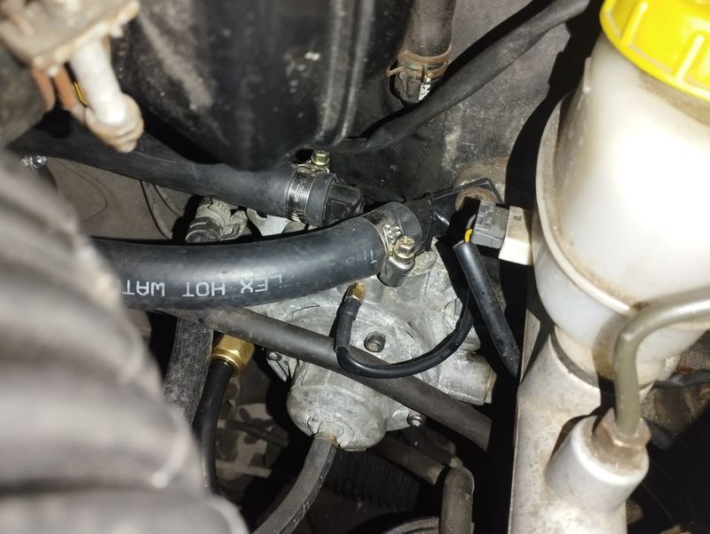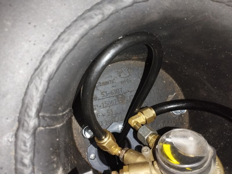 Газовый редуктор установлен под главным тормозным цилиндром и подключен к шлангам печки салона.